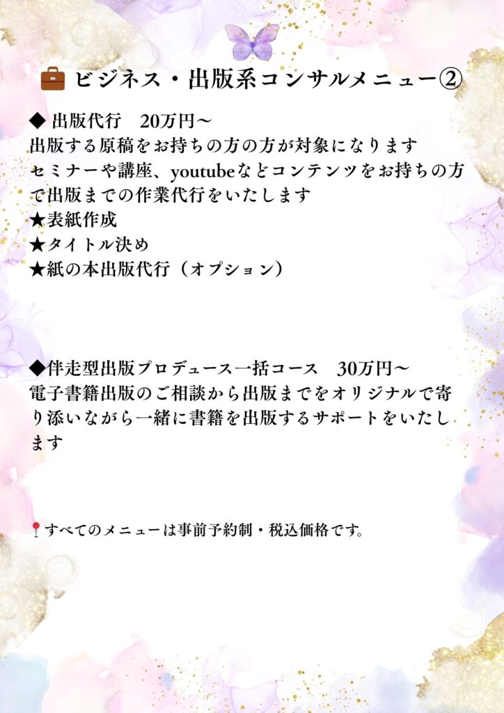 ビジネス・出版系コンサルメニュー