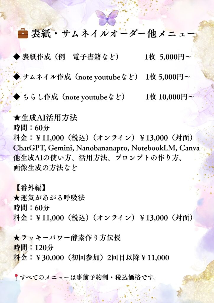 表紙・サムネイルオーダー、AI講座メニュー